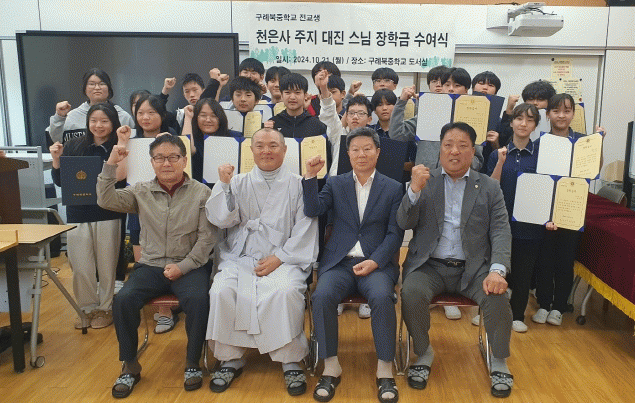 À̳¯ °³ÃÖµÈ ¼ö¿©½Ä¿¡´Â ±è¼±¹è ±³ÀåÀ» ºñ·ÔÇÑ ±³Á÷¿ø°ú ±è¼öö ±¸·Ê±ºÀÇȸ ÀÇ¿ø, ±èÀçÀ± ¿î¿µÀ§¿øÀå µîÀÌ Âü¼®ÇÑ °¡¿îµ¥ ÀÎÀçºÒ»ç¸¦ À§ÇÑ ÀÛÀº ½ÇõÀÇ ÀÏȯÀ¸·Î Àü±³»ý 21¸í¿¡°Ô °¢ 20¸¸¿ø¾¿ ÃÑ 630¸¸¿øÀÇ ÀåÇбÝÀ» Áö±ÞÇß´Ù.