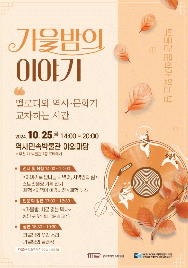 Á¤¹Î±¸ Àü³²´ë ±³¼ö´Â ¡®°¡À»¹ã, ½Ã·Î Àд ¿ª»ç¡¯¸¦ ÁÖÁ¦·Î ¿ÀÈÄ 5½ÃºÎÅÍ ¿ÀÈÄ 6½Ã30ºÐ±îÁö °¿¬ÇÑ´Ù. ÀÌ¾î ¡®°¡À»¹ãÀÇ ¿ì¸® ¼Ò¸®¿Í Ŭ·¡½Ä¡¯À̶ó´Â ÁÖÁ¦·Î Áö¿ª¿¡¼ Ȱµ¿ÇÏ´Â ÀþÀº À½¾ÇÀεéÀÇ °ø¿¬µµ ÆîÃÄÁø´Ù.