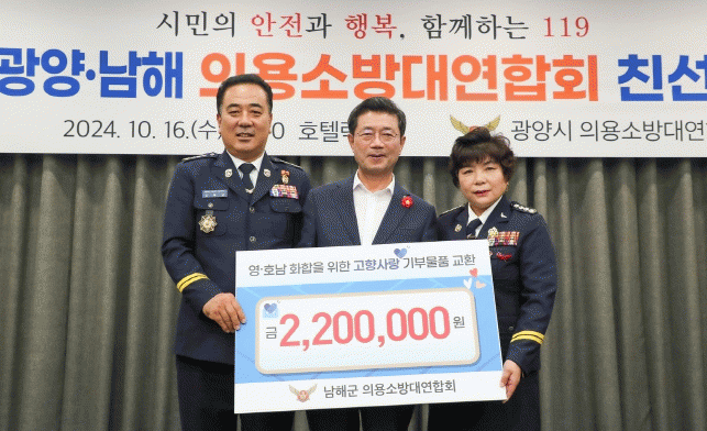 Á¤ÀÎÈ ±¤¾ç½ÃÀåÀº ¡°°íÇâ»ç¶û±âºÎÁ¦¿¡ µ¿ÂüÇØÁֽŠ°Í¿¡ Áø½ÉÀ¸·Î °¨»çÀÇ ¸»¾¸À» µå¸°´Ù¡±¶ó¸ç ¡°±¤¾ç½Ã ÀÇ¿ë¼Ò¹æ´ë¿¬ÇÕȸ¿Í ³²Çرº ÀÇ¿ë¼Ò¹æ´ë¿¬ÇÕȸ°¡ ¾ÕÀ¸·Î ²ö²öÇÑ »óÈ£ ±³·ù¸¦ À̾°¡¸ç ´õ¿í ¹ßÀüÇÏ½Ã±æ ±â¿øÇÑ´Ù¡±¶ó°í ¸»Çß´Ù. ÀÌ¾î ¡°±âºÎ±ÝÀº Áö¿ª°øµ¿Ã¼ Ȱ¼ºÈ¿Í »çȸÀû Ãë¾à°èÃþ Áö¿ø µî ÁֹΠº¹¸® ÁõÁøÀ» À§ÇØ »ç¿ëÇϵµ·Ï Çϰڴ١±¶ó°í µ¡ºÙ¿´´Ù.