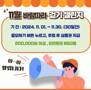 À̹ø °È±â 縰Áö ¿î¿µ ±â°£Àº 11¿ù 1ÀϺÎÅÍ 11¿ù 30ÀϱîÁö´Ù. Âü¿©¸¦ ¿øÇÏ´Â ±¤¾ç½Ã¹ÎÀº ¸ð¹ÙÀÏ °È±â ¾Û ¡®¿öÅ©¿Â¡¯À» ¼³Ä¡ÇÏ°í ¡®±¤¾ç½Ã °ø½Ä Ä¿¹Â´ÏƼ¡¯¿¡ °¡ÀÔÇÑ ÈÄ Ã§¸°Áö ÅÇ¿¡¼ ±¤¾ç½Ã °È±â 縰Áö ¡®Âü¿©Çϱ⡯¸¦ ´©¸£¸é Âü¿© ½ÅûÀÌ ¿Ï·áµÈ´Ù.