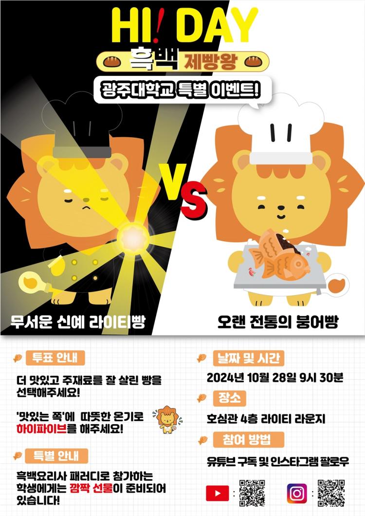 ±¤ÁÖ´ëÇб³(ÃÑÀå ±èµ¿Áø)´Â ¿À´Â 28ÀÏ ¿ÀÀü 9½Ã 30ºÐºÎÅÍ ±³³» È£½É°ü 4Ãþ ¶óÀÌÆ¼ ¶ó¿îÁö¿¡¼ OTTä³Î Àα⠽ø®Áî¹° ¡®Èæ¹é¿ä¸®»ç¡¯¸¦ Ä·ÆÛ½º ¹öÀüÀ¸·Î ¿À¸¶ÁÖ ÇÑ ¡®Èæ¹é Á¦»§¿Õ¡¯ À̺¥Æ®¸¦ ¹úÀδÙ.