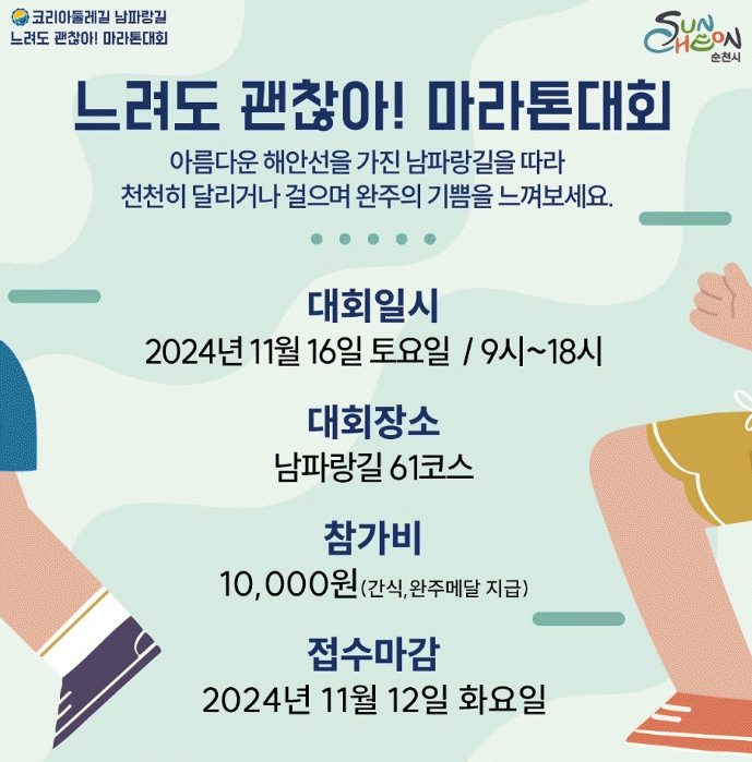 À̹ø Çà»ç´Â ÇØ¾È¼±ÀÌ ¾Æ¸§´Ù¿î ¼øÃµÀÇ ³²ÆÄ¶û±æÀ» °ÉÀ¸¸ç ÀÚ¿¬°æ°üÀ» °¨»óÇϰí Àú¸¶´ÙÀÇ ¼Óµµ·Î ¿ÏÁÖÇÏ¿© °È±â¿¡ °ü½ÉÀ» °¡Áö°í Èú¸µÇÒ ¼ö ÀÖ´Â ½Ã°£À» Á¦°øÇϱâ À§ÇØ ¸¶·ÃµÆ´Ù.