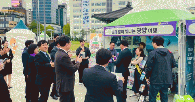 ¾Æ¿ï·¯ ±¤¾ç°ü±¤ À̹ÌÁö¸¦ ·¦ÇÎÇÑ À̵¿Çü °ü±¤¾È³»¼Ò¸¦ °¡µ¿ÇØ È«º¸¿µ»óÀ» ¼ÛÃâÇÏ°í ´Ùä·Ó°Ô Å¥·¹ÀÌ¼ÇµÈ °ü±¤ ¸®Çø´À» ¹èºÎÇÏ´Â µî ´Ù°¢ÀûÀÎ ¸¶ÄÉÆÃÀ» ¹ú¿´À¸¸ç, Àα⸦ ²ø°í ÀÖ´Â ¸Åµ¹ÀÌ ±ÂÁî¿Í ÇÔ²² ¸Å½Ç³óÃà¾×, ¸Å½ÇÀ徯Âî µî ±¤¾çÀÇ Æ¯»ê¹°À» Ȱ¿ëÇÑ °¡°ø½Äǰ µîÀ» ¼±º¸ÀÌ´Â µî ±¤¾ç½ÃÀÇ »ê¾÷°ú °æÁ¦¸¦ Ȱ¼ºÈ¸¦ À§ÇÑ ´Ù¾çÇÑ È°µ¿À» ÆîÃÆ´Ù.