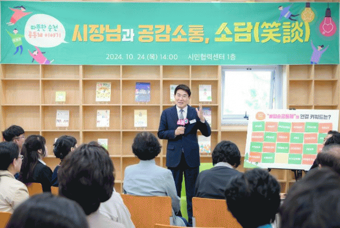 ³ë°ü±Ô ¼øÃµ½ÃÀåÀº ¡°°øµ¿Ã¼¾ß¸»·Î ¸¶À»ÀÇ ¹®Á¦¿Í °¥µîÀ» Á¶À²Çϰí Áö¿ªÀ» °Ç°ÇÏ°Ô À̲ø¾î°¡´Â Èû¡±À̶ó¸ç, ¡°¾ÕÀ¸·Îµµ °øµ¿Ã¼ÀÇ ¼ºÀå°ú ¹®È È®»êÀ» À§ÇÑ Àû±ØÀûÀÎ Áö¿øÀ¸·Î ÇູÇÑ Á¤ÁÖµµ½Ã¸¦ ¸¸µé¾î °¡°Ú´Ù¡±°í ¸»Çß´Ù.