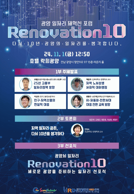 ÀÏÀÚ¸® ÀçÇõ½Å Æ÷·³ ¡®Renovation 10¡¯Àº ±¤¾ç½Ã °í¿ë½ÃÀåÀÌ Áö³ 10³â°£ °ÞÀº º¯È¿¡ ´ëÇÑ ºÐ¼®À» ¹ÙÅÁÀ¸·Î ½ÃÀÇ ¹Ì·¡ ÀÏÀÚ¸®, ¹Ì·¡ »ê¾÷À» Àü¸ÁÇϱâ À§ÇØ ¸¶·ÃµÆ´Ù.
