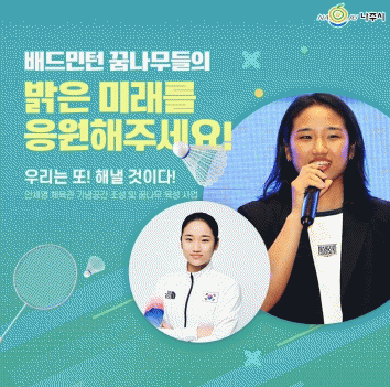 ¾È¼¼¿µ üÀ°°ü ±â³ä°ø°£ Á¶¼º ¹× ²Þ³ª¹« À°¼º Áö¿øÀº 28³â ¸¸¿¡ ¿Ã¸²ÇÈ ¹èµå¹ÎÅÏ ¿©ÀÚ ´Ü½Ä ±Ý¸Þ´Þ°ú ÀÌ Á¾¸ñ ´ëÇѹα¹ ù ±×·£µå½½·¥À» ´Þ¼ºÇÑ ³ªÁÖ Ãâ½Å ¾È¼¼¿µ ¼±¼öÀÇ ¾÷ÀûÀ» ±â³äÇϰí À¯¸ÁÁÖ À°¼ºÀ» À§ÇÑ »ç¾÷ÀÌ´Ù.