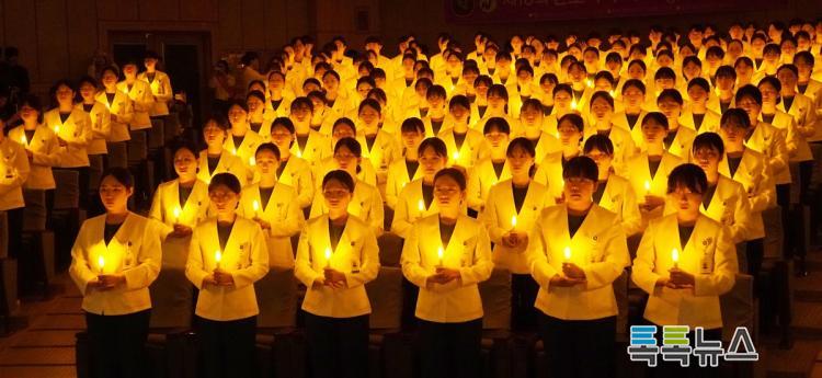 ³ªÀÌÆÃ°ÔÀÏ ¼±¼½ÄÀº ÀÓ»ó ½Ç½ÀÀ» ¾ÕµÐ °£È£Çаú 2Çгâ ÇлýµéÀÌ °£È£ Àü¹®Á÷ÀÇ ¼þ°íÇÑ Á¤½ÅÀ» »ó¡ÇÏ´Â ÃкÒÀ» ¹àÇôµé°í, ³ªÀÌÆÃ°ÔÀÏÀÇ Èñ»ý°ú ºÀ»ç Á¤½ÅÀ» µÇ»õ±â¸ç ÀηùÀÇ °Ç°°ú ¾È³çÀ» À§ÇØ Ã¥ÀÓÀ» ´ÙÇÒ °ÍÀ» ´ÙÁüÇÏ´Â ÀǹÌÀÖ°í ÀüÅëÀûÀÎ Çà»çÀÌ´Ù.