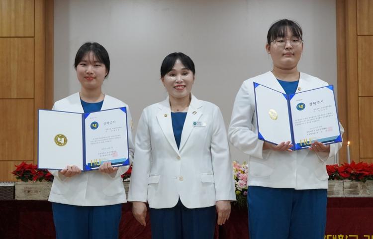 °£È£Çаú´Â À̳¯ ºÀ»çȰµ¿°ú Çо÷ ¹× ¿Ü±¹¾î ´É·Â¿¡¼ ¿ì¼öÇÑ ¼º°ú¸¦ °ÅµÐ Á¶À¯Áö, ȲÀΰæ Çлý(2Çгâ)¿¡°Ô °£È£Çаú ±³¼ö ¹× Á¹¾÷»ýµéÀÌ ¸Å³â ÇÕ½ÉÇØ ¸¶·ÃÇÑ ÀåÇбâ±Ý ¡®°£È£Çаú Á¦ÀÚ»ç¶û ÀåÇбݡ¯°ú ¡®ÈĹè»ç¶û ÀåÇбݡ¯ ÀåÇÐÁõ¼¸¦ °¢°¢ Àü´ÞÇß´Ù.