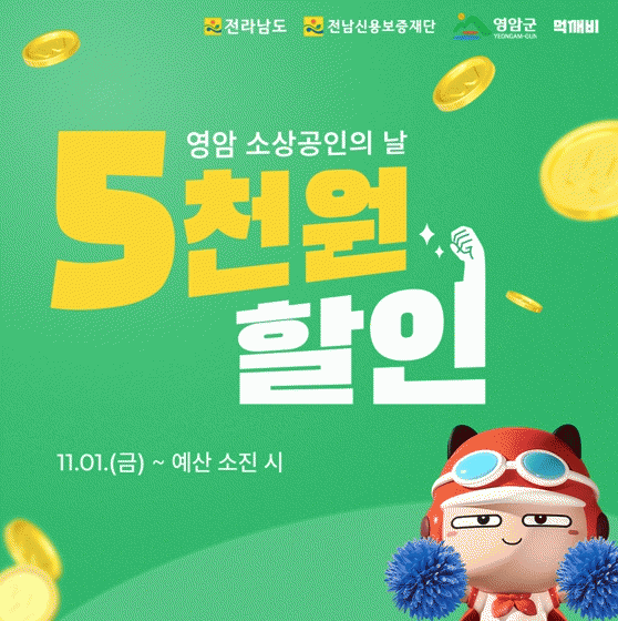 Áö¿ª ¼Ò»ó°øÀÎÀÇ ¸ÅÃâÀ» µ½°í, Áö¿ª°æÁ¦ Ȱ¼ºÈ¸¦ À§ÇÑ À̹ø À̺¥Æ®´Â, ¸Ô±úºñ¾Û¿¡¼ 1¸¸5,000¿ø ÀÌ»ó °áÁ¦ÇÏ´Â ¸ðµç ÀÌ¿ëÀÚ¿¡°Ô 5,000¿ø »ó´çÀÇ ÇÒÀÎ ÄíÆùÀ» ¹Ù·Î Áö±ÞÇÏ´Â ³»¿ë.
