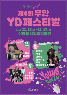 ¡®Áñ°Å¿òÀÌ ÅÍÁø´Ù! ¹«¾È YDÆä½ºÆ¼¹ú!¡¯À̶ó´Â ÁÖÁ¦·Î ¿¸®´Â ÃàÁ¦´Â ÃÊ¡¤Áß¡¤°íµîÇб³ 12³â°£ ¾Õ¸¸ º¸°í ´Þ·Á¿Â ¼öÇè»ý°ú Ä¡¿ÇÑ Ãë¾÷³ ¼Ó¿¡¼ ²ÞÀ» ÇâÇØ ³ª¾Æ°¡´Â û³âµé¿¡°Ô ÀçÃæÀüÀÇ ½Ã°£À» Á¦°øÇϰí û³âµéÀÌ ¼·Î ¼ÒÅëÇÏ¸ç »õ·Î¿î ¿¡³ÊÁö¸¦ ¾ò°í ¿Á¤À» ´ÙÁüÇÒ ¼ö ÀÖ´Â °ø°£À» Á¦°øÇϰíÀÚ ¸¶·ÃÇß´Ù.