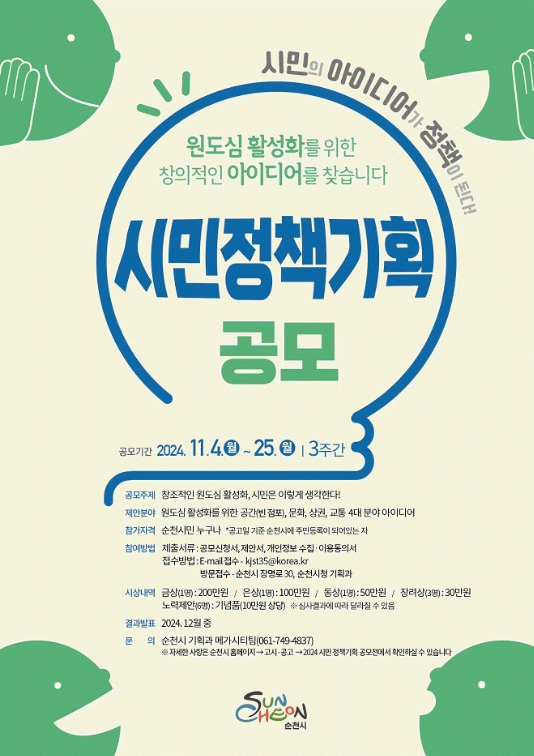À̹ø °ø¸ðÀüÀº ¡®Ã¢Á¶ÀûÀÎ ¿øµµ½É Ȱ¼ºÈ, ½Ã¹ÎÀº ÀÌ·¸°Ô »ý°¢ÇÑ´Ù!¡¯¸¦ ÁÖÁ¦·Î ¿øµµ½É Ȱ¼ºÈ¸¦ À§ÇÑ ¡ã°ø°£(ºó Á¡Æ÷) ¡ã¹®È ¡ã»ó±Ç ¡ã±³Åë 4´ë ºÐ¾ß¿¡ ´ëÇÑ ÇÁ·ÎÁ§Æ®¸¦ ¹ß±¼Çϸç, ¼øÃµ½Ã¿¡ ÁÖ¼Ò¸¦ µÐ ½Ã¹Î ´©±¸³ª °³ÀÎ ¶Ç´Â ÆÀÀ¸·Î Âü¿©ÇÒ ¼ö ÀÖ´Ù.