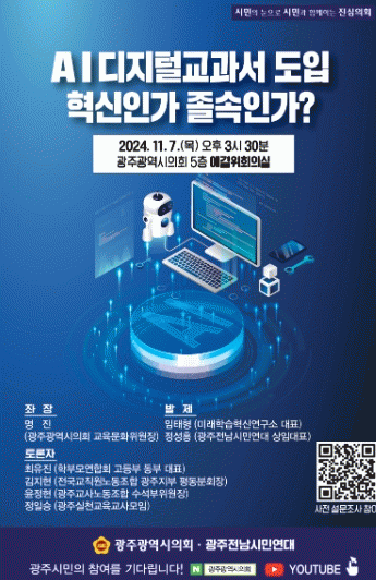 ±¤ÁÖ½ÃÀÇȸ´Â 7ÀÏ ½ÃÀÇȸ ¿¹»ê°á»êÀ§¿øÈ¸ ȸÀǽǿ¡¼ ¡®AIµðÁöÅб³°ú¼ µµÀÔ Çõ½ÅÀΰ¡ Á¹¼ÓÀΰ¡?¡¯ ¶ó´Â ÁÖÁ¦·Î Á¤Ã¥Åä·Ðȸ¸¦ °¡Áú ¿¹Á¤ÀÌ´Ù.