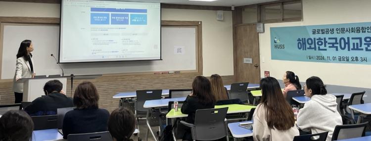 [ÅåÅå´º½º]È£³²´ëÇб³ ±Û·Î¹ú°ø»ý Àι®»çȸ À¶ÇÕÀÎÀç¾ç¼º»ç¾÷´Ü(ÀÌÇÏ HUSS)¿¡¼´Â 11¿ù 1ÀÏ ¼º½Å¿©ÀÚ´ëÇÐ Àå¹Ì°æ ±³¼ö(Àü ¼¼Á¾ÇдçÀç´Ü ºÎÀå)¸¦ °»ç·Î ÃÊû, ¡®ÇØ¿Ü Çѱ¹¾î ±³¿ø Áø·Î Ž»ö¡¯À» ÁÖÁ¦·Î Áø·ÎƯ°À» °®°í Çѱ¹¾î ±³À°ÀÇ ±Û·Î¹úÈ¿Í ÇØ¿Ü ÁøÃâ¿¡ ´ëÇÑ ÅëÂûÀ» °øÀ¯Çß´Ù.