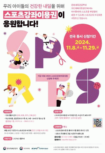 2025³âµµ ½ºÆ÷Ã÷°ÁÂÀÌ¿ë±Ç Áö¿ø ´ë»óÀÚ´Â ±âÃÊ»ýȰ¼ö±Þ°¡±¸, Â÷»óÀ§°èÃþ, ¹ýÁ¤ ÇѺθð Áö¿ø °¡Á· ¸¸ 5¼¼ºÎÅÍ 18¼¼ À¯¡¤Ã»¼Ò³âÀ̸ç, Àå¾ÖÀÎ ½ºÆ÷Ã÷°ÁÂÀÌ¿ë±Ç Áö¿ø ´ë»óÀÚ´Â ¸¸5~69¼¼ µî·Ï Àå¾ÖÀÎÀÌ´Ù.