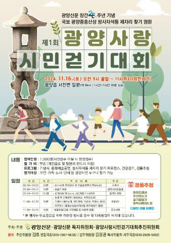 °È±â Çà»ç´Â ¿À´Â 16ÀÏ 08½Ã 40ºÐºÎÅÍ 12½Ã±îÁö ÁøÇàµÉ ¿¹Á¤À̸ç, ±¤¾çÀ¾ ¼Ãµ¿îµ¿Àå¿¡¼ Ãâ¹ßÇØ µµ¿ù¸® µµ¿ù±³¸¦ µ¹¾Æ¿À´Â ¾à 6km ÄÚ½º·Î ½Ã¹Î ´©±¸³ª ¹«·á·Î Âü°¡ÇÒ ¼ö ÀÖ´Ù.