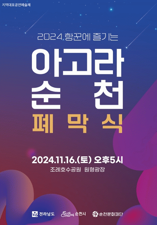 ¾Æ°í¶ó ¼øÃµÀº ¿Àµð¼ÇÀ» ÅëÇØ 5°³ À帣(¡ã±¹¾Ç ¡ã´ëÁßÀ½¾Ç ¡ã´Ù¿ø¿¹¼ú ¡ã¹«¿ë¡¤´í½º ¡ã¾ç¾Ç), 100ÆÀÀÇ ´Ù¾çÇÑ °ø¿¬ÆÀÀ» ¼±¹ßÇßÀ¸¸ç, 4¿ù 26ÀÏ °³¸·½ÄÀ» ½ÃÀÛÀ¸·Î 7°³¿ù°£ ³«¾ÈÀ¾¼º, ¹®ÈÀÇ °Å¸®, Á¶·ÊÈ£¼ö°ø¿ø, ¿Àõ±×¸°±¤Àå, ¼øÃµ¸¸½ÀÁö µî ¼øÃµ½Ã ÀÏ¿ø¿¡¼ ¡®¾Æ°í¶ó ¼øÃµ, ¿¹¼ú·Î ÇǾ´Ù¡¯¸¦ ÁÖÁ¦·Î ½Ã¹Îµé°ú ¿¹¼úÀÎ, ±×¸®°í °ü±¤°´ÀÌ Âü¿©Çϰí ÇÔ²² ÇÒ ¼ö ÀÖ´Â ¹®È¿¹¼ú °ø¿¬À» ÁøÇàÇØ¿Ô´Ù.