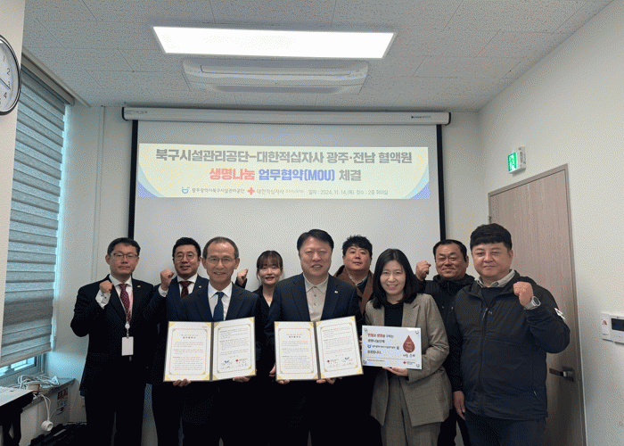 ±¤Áֺϱ¸½Ã¼³°ü¸®°ø´Ü ³ª±â¹é ÀÌ»çÀåÀº ¡°À̹ø Çù¾àÀ» ÅëÇØ ¼ÒÁßÇÑ »ý¸íÀ» »ì¸± ¼ö ÀÖ´Â ÇåÇ÷¿¡ µ¿ÂüÇÏ´Â °è±â°¡ µÇ±â¸¦ ¹Ù¶õ´Ù¡±¸ç, ¡°°ø´Ü Á÷¿øµéÀÇ Á¤±âÀûÀÎ ÇåÇ÷ Âü¿©¸¦ ÅëÇÏ¿© °Ç°ÇÑ Áö¿ª»çȸ ±¸Çö¿¡ ¾ÕÀå¼°Ú´Ù¡±°í ¹àÇûÀ¸¸ç,