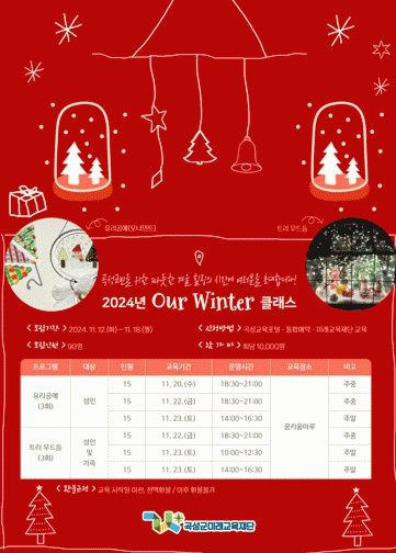 ¡®2024³â Our Winter Ŭ·¡½º¡¯´Â ´Ù°¡¿À´Â Ãß¿î °Ü¿ïÀ» ¸ÂÀÌÇØ ¹è¿òÀ» ÅëÇÑ ¼ºÃë°¨À» ´À³¢°í °¡Á·ÀÌ ÇÔ²² Âü¿©ÇØ ÇູÀ» ¼±¹°ÇÏ´Â ÇÁ·Î±×·¥À¸·Î ÃÑ 6ȸ ÁøÇàµÉ ¿¹Á¤ÀÌ´Ù.