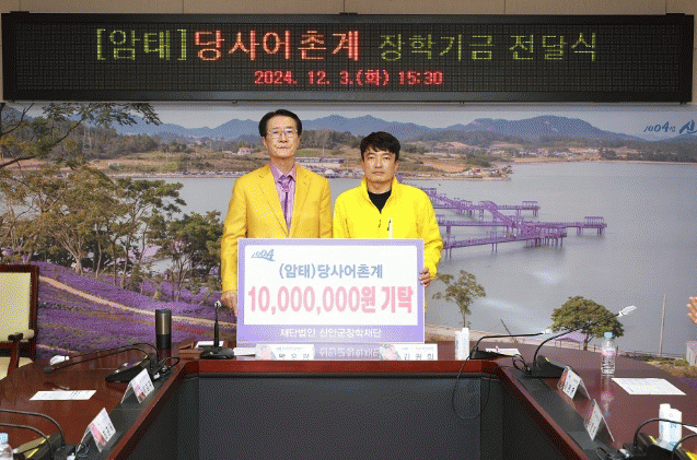 ¹Ú¿ì·® ÀÌ»çÀåÀº ¡°¹Ù´Ù¿¡¼ °Ü¿ïö µ¿¾È ȸ¿øµéÀÌ °í»ýÇÏ¸ç ¾òÀº ¼ÒÁßÇÑ ¼öÀÍÀ» Áö¿ª»çȸ¿¡ ȯ¿øÇØ ÁֽŠ´ç»ç¾îÃ̰è ȸ¿øµé²² °¨»ç¸¦ µå¸°´Ù¡±¶ó¸ç, ¡°½Å¾È±º ¾îÃ̰è Áß Ã³À½À¸·Î ÀåÇбâ±ÝÀ» ±âÅ¹ÇØ ÁֽŠÀ̹ø »ç·Ê´Â Áö¿ª»çȸ¿Í »ó»ýÇϸç ÀÎÀç À°¼º¿¡ ±â¿©ÇÏ´Â ´ç»ç¾îÃ̰èÀÇ ¸Å¿ì ¶æ±íÀº ³ª´®ÀÇ ½ÇõÀ¸·Î ±âʹÞÀº ÀåÇбÝÀº ½Å¾È±º ÇлýµéÀÇ Çо÷°ú ¹Ì·¡¸¦ À§ÇØ ¼ÒÁßÈ÷ Ȱ¿ëÇϰڴ١±¶ó°í ¹àÇû´Ù.
