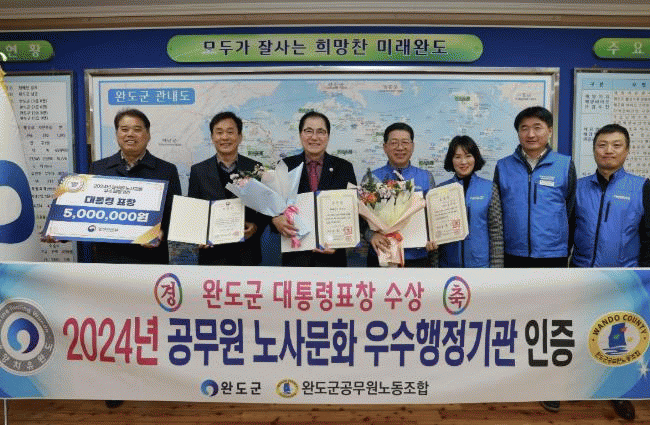 ÇÑÆí ¿Ïµµ±º°ø¹«¿ø³ëµ¿Á¶ÇÕ ±è¿ÏÁÖ À§¿øÀåÀº °ÇÀü ³ë»ç °ü°è ±¸Ãà¿¡ ´ëÇÑ °ø·Î¸¦ ÀÎÁ¤¹Þ¾Æ ´ëÅë·É ǥâÀ» ¹Þ´Â ¿µ¿¹¸¦ ¾ò¾ú´Ù.