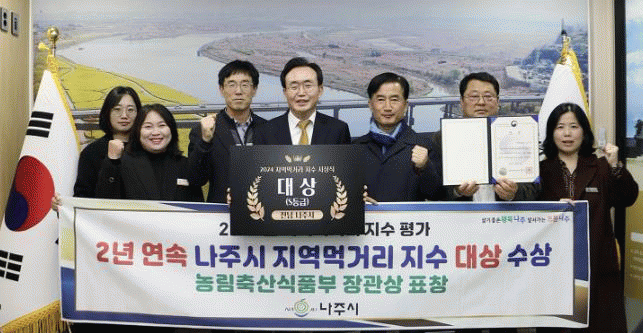 À±º´Å ³ªÁÖ½ÃÀåÀº ¡°¸Ô°Å¸® Áö¼ö Æò°¡ 2³â ¿¬¼Ó ´ë»ó ¼ö»óÀº ½Ã¹Îµé²² °Ç°ÇÑ ¸Ô°Å¸®¸¦ Á¦°øÇϱâ À§ÇØ »ý»ê ³ó°¡¿Í ¼ÒºñÀÚ°¡ ÇÔ²² ³ë·ÂÇØ °ÅµÐ ¼ÒÁßÇÑ °á½ÇÀÌ´Ù¡±°í ´ë»ó ¼Ò°¨À» ¸»Çß´Ù.