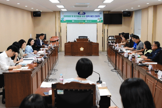 À̹ø °£´ãȸ´Â Áö¼Ó°¡´ÉÇÑ ¹Ý·Áµ¿¹° Ä£È Á¤Ã¥ ¹æÇâÀ» ¸ð»öÇϱâ À§ÇÑ ÀÚ¸®·Î, ±è¸í¼÷ ÀÇ¿ø(Áøº¸´ç, ºñ¾Æµ¿¡¤½Å°¡µ¿¡¤½Å⵿)ÀÌ ÁÂÀåÀ» ¸Ã°í, Á¶±¤Çü ±¤»ê±¸ ¼öÀÇ»çȸ ȸÀå, Á¤¿ìÁø ½Å°¡µ¿ ¹Ý·Áµ¿¹° »ç¶û´Ü ºÎ´ÜÀåÀ» ºñ·ÔÇØ µ¿¹°´Üü °ü°èÀÚµé°ú ±¤»ê±¸ÀÇ¿ø, °ü°è °ø¹«¿ø µî 20¿© ¸íÀÌ ÇÔ²²Çß´Ù.
