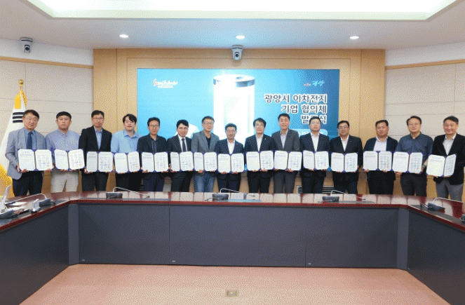 À̳¯ Çà»ç¿¡´Â ±¤¾ç½Ã ¼ÒÀç ÀÌÂ÷ÀüÁö ±â¾÷ 13°³»ç¿Í Á¤ÀÎÈ ½ÃÀå, ¿ÀÀÍÇö Àü³²Å×Å©³ëÆÄÅ© ¿øÀå µî ÁÖ¿ä °ü°èÀÚ°¡ Âü¼®Çß´Ù.