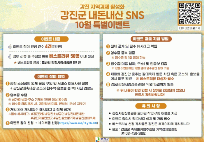À̺¥Æ® Âü¿© ¹æ¹ýÀº ¨ç°Áø±º ¼Ò»ó°øÀÎ ¾÷ü ÀÌ¿ë ÈÄ »çÁø ¹× °¥´ë ÃàÁ¦ È«º¸ »çÁø(È«º¸¹°, Æ÷½ºÅÍ, Çö¼ö¸· µî) ÃÔ¿µ ¨è1¸¸ ¿ø ÀÌ»ó ¿µ¼öÁõ »çÁø ÃÔ¿µ ¨é°³ÀÎ SNS¿¡ Çʼö ÇØ½ÃÅÂ±×¿Í »çÁøµéÀ» ÇÔ²² °Ô½Ã(Àüü °ø°³ ¹× Çʼö ÇØ½ÃÅÂ±× : #°Áø¸ÀÁý #°Áø¼Ò»ó°øÀÎ #°Áø³»µ·³»»ê #°Áø°¡º¼¸¸ÇѰ÷ #°Áø»óÈ£¸í±âÀç #°Áø°¥´ëÃàÁ¦) ¨êÀ̺¥Æ® Âü¿© ½Åû ¼ø¼·Î Âü¿©ÇØ¾ß ÇÑ´Ù.