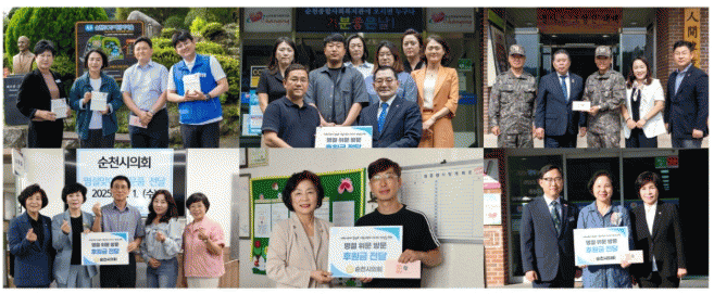 ¼øÃµ½ÃÀÇȸ ÀÇ¿øµéÀº 9¿ù 29ÀÏ Çì¾Æ¸²Ã»¼Ò³â½°ÅÍ, ¼º½Å¿ø µî 8°³¼Ò¸¦ ã¾Æ À§¹®Ç°À» Àü´ÞÇÏ°í ½Ã¼³ ¿î¿µ »óȲÀ» ²Ä²ÄÈ÷ »ìÇÉ ÈÄ, ½Ã¼³ °ü°èÀÚµé ³ë°í¿¡ °Ý·Á¿Í °¨»ç¸¦ ÀüÇß´Ù.