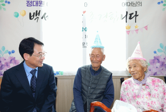 À̳¯ 100¼¼ ¾î¸£½Å²² µå¸®´Â û·ÁÀå°ú ÇÔ²² °úÀÏ¡¤ÂüÄ¡¼¼Æ® µî À§¹®Ç°À» Àü´ÞÇßÀ¸¸ç, ÄÉÀÌÅ© Ä¿ÆÃ°ú ±â³äÃÔ¿µÀ» ÅëÇØ Âü¼®ÀÚ ¸ðµÎ°¡ ¾î¸£½ÅµéÀÇ Àå¼ö¸¦ ÃàÇÏÇÏ´Â ½Ã°£À» °¡Á³´Ù.