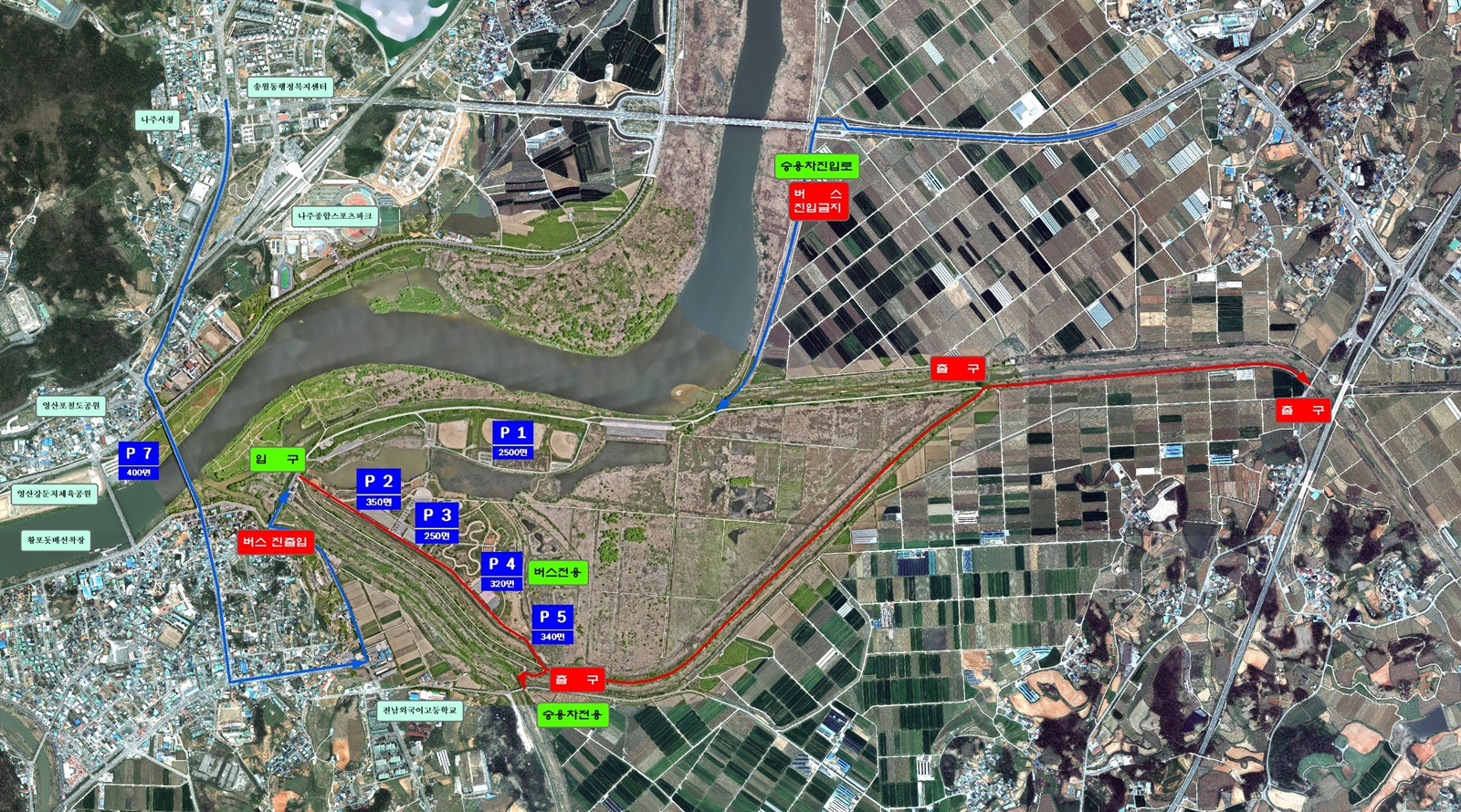 ÃàÁ¦Àå¿¡¼ ³ª°¡´Â ±æÀº Á¦ 1ÁÖÂ÷ÀåÀÇ °æ¿ì ÀÔ±¸ ¹Ý´ëÆí Ãⱸ¸¦ ÀÌ¿ëÇØ ¹°³ÑÀÌ ±¸°£ »ï°Å¸®·Î ÁøÀÔÇØ Á¦¹æµµ·Î³ª ¿µ»êõ ¹æÇâÀ¸·Î ºüÁ®³ª°¡¸é µÈ´Ù. ¶Ç ÃàÁ¦ÀåÀ̳ª Àα٠ÀÓ½ÃÁÖÂ÷Àå ÀÌ¿ë Â÷·®ÀÌ Çà»çÀå¿¡¼ ³ª¿Ã ¶§´Â ¿µ»êõÀ̳ª Àü³²¿Ü±¹¾î°í±³ ¹æÇâÀ¸·Î ºüÁ®³ª°¡µµ·Ï Çß´Ù.
