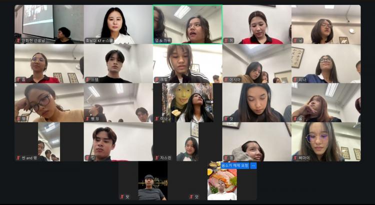 µÎ Â÷·Ê¿¡ °ÉÃÄ ½Ç½Ã°£ ¿Â¶óÀÎÀ¸·Î ÁøÇàµÈ À̳¯ °£´ãȸ¿¡´Â ¡®È£³²´ë KF ±Û·Î¹ú e-½ºÄð Çѱ¹¾î±³À°»ç¾÷¡¯ÀÇ ¿Àºû³ª·¡ °»ç(Çѱ¹¾î±³À°¼¾ÅÍ)¿Í ű¹ ½öŬ¶ó³ªÄ«¸°¿Õ¸³´ëÇб³ ¾ÈÈÇö ±³¼ö(Çѱ¹ÇкÎ) ¹× Çлý 60¸íÀÌ Âü¿©ÇßÀ¸¸ç, 'Çѱ¹¾î ±âÃÊ 2(VODÄÜÅÙÃ÷)' ¼ö¾÷¿¡ ´ëÇØ ÁúÀÇ ÀÀ´äÇÏ´Â ½Ã°£À» °¡Á³´Ù.
