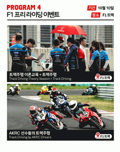 11ÀÏ¿¡¼ 12ÀÏ¿¡´Â »ó¼³¼Å¶¿¡¼ ¡®Àü Çѱ¹·Îµå·¹À̽º èÇǾð½Ê(AKRC)¡¯ 5¶ó¿îµå ´ëȸ°¡ °³ÃֵȴÙ. ±¹³» ÃÖ°í ¼öÁØÀÇ ¸ðÅÍ»çÀÌŬ ¼±¼öµéÀÌ Âü¿©ÇØ ¹ÚÁø°¨ ³ÑÄ¡´Â °æ±â¸¦ ¼±º¸ÀÏ ¿¹Á¤À¸·Î, °ü¶÷°´µéÀº »ó¼³°Ç¹° 2Ãþ ¾ß¿Ü °ü¶÷¼®À» ÀÌ¿ëÇÒ ¼ö ÀÖ´Ù.