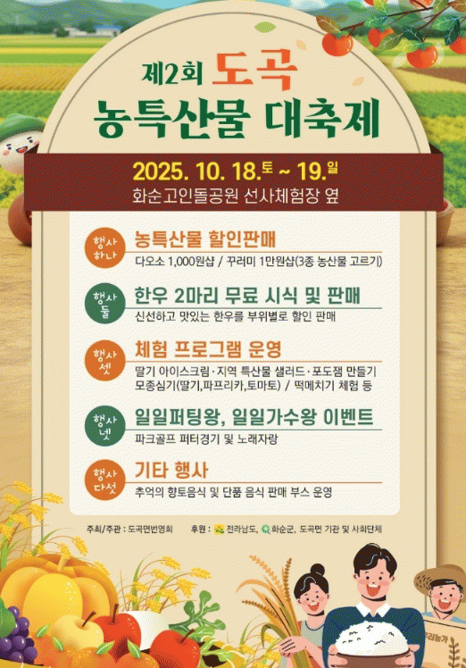 À̹ø ÃàÁ¦´Â 2025 ȼø °íÀε¹ °¡À»²É ÃàÁ¦¿Í ¿¬°èÇÑ µ¿¹Ý Çà»ç·Î ÀÛ³â Á¦1ȸ ÃàÁ¦ÀÇ ¼º°øÀûÀÎ °³ÃÖ¿¡ ÀÌ¾î ¿ÃÇØµµ µµ°î Áö¿ªÀÇ ¿ì¼öÇÑ ³óƯ»ê¹°À» ³Î¸® ¾Ë¸®°í, Áö¿ª°æÁ¦ Ȱ¼ºÈ¸¦ µµ¸ðÇϰíÀÚ ±âȹµÆ´Ù.