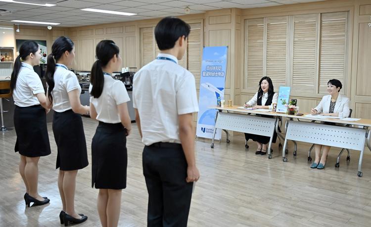 ÀÔÇÐó(óÀå ÃÖ¿µÈ)´Â Áß¾Ó Àܵð±¤Àå ·ÎÅ͸®¿¡ Ä¿ÇÇÂ÷¸¦ ÁغñÇØ ¼öÇè»ý°ú Çкθðµé¿¡°Ô ¸éÁ¢¿¡ µû¸¥ ±äÀå°¨À» ´ú¾îÁÖ°í ÃÖ»óÀÇ ÄÁµð¼ÇÀ» À¯ÁöÅä·Ï ÆíÀǸ¦ Á¦°øÇߴµ¥, ƯÈ÷ Ç×°ø¼ºñ½ºÇаú´Â ¸éÁ¢¿¡ ÁöÀåÀ» ÁÖÁö ¾Ê´Â ¹üÀ§³»¿¡¼ Æ÷ÅäÁ¸ ¸¶·Ã°ú »Ì±â À̺¥Æ® ½Ç½Ã µî Ȱ·Â³ÑÄ¡´Â ºÐÀ§±â¸¦ ¿¬ÃâÇß´Ù.