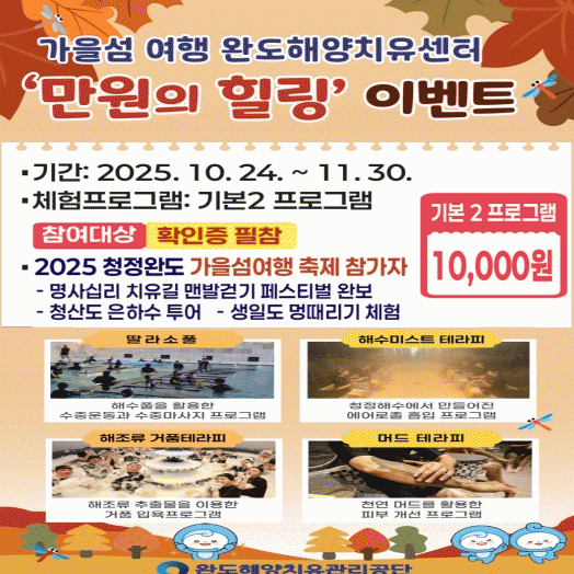 ¡®¸¸¿øÀÇ Èú¸µ¡¯ À̺¥Æ®´Â ¡®¿Ïµµ¿Ô¼¶, Ä¡À¯µÆ¼¶¡¯À» ÁÖÁ¦·Î °³ÃֵǴ ¡®2025 ûÁ¤ ¿Ïµµ °¡À» ¼¶ ¿©Ç࡯À» ÇÏ´Â °ü±¤°´ÀÌ °¡À» ¼¶ ¿©Çà°ú ÇÔ²² ºÎ´ã ¾øÀÌ ÇØ¾çÄ¡À¯ ÇÁ·Î±×·¥À» Áñ±æ ¼ö ÀÖµµ·Ï ¸¶·ÃµÆ´Ù.