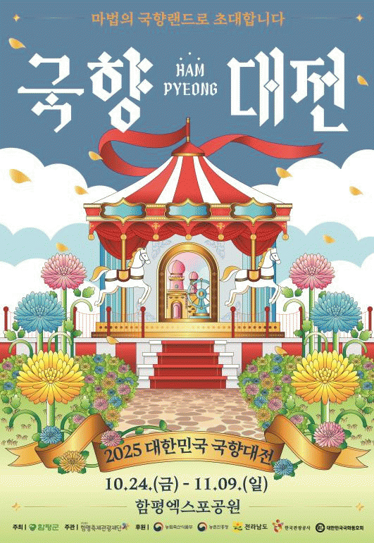 ÇÑÆí, 2025 ´ëÇѹα¹ ±¹Çâ´ëÀüÀº ¿À´Â 10¿ù 24ÀϺÎÅÍ 11¿ù 9ÀϱîÁö 17Àϰ£ ÇÔÆò¿¢½ºÆ÷°ø¿ø ÀÏ¿ø¿¡¼ ¡®¸¶¹ýÀÇ ±¹Çâ·£µå¡¯¸¦ ÁÖÁ¦·Î ȸÀü¸ñ¸¶¿Í ´ë°ü¶÷Â÷, ¸¶¹ýÀÇ ¼º µî ´ëÇü ±¹ÈÁ¶Çü¹°°ú ¸íǰ ±¹ÈºÐÀç ÀÛǰ Àü½Ã, ºê¶ó½º¹êµå °Å¸®°ø¿¬, ¸¶¹ýÀÇ ÈÞ¸ÕÆ÷Åä µî ´Ù¾çÇÏ°í »ýµ¿°¨ ÀÖ´Â Àü½Ã¡¤°ø¿¬¡¤Ã¼ÇèÇÁ·Î±×·¥À¸·Î °ü¶÷°´À» ¸ÂÀÌÇÒ ¿¹Á¤ÀÌ´Ù.