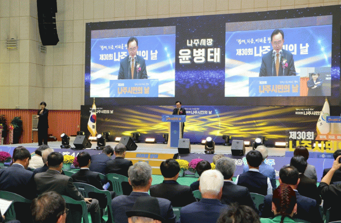 À±º´Å ³ªÁÖ½ÃÀåÀº ¡°½Ã¹ÎÀÇ ³¯Àº ¿ì¸® ¸ðµÎ°¡ ³ªÁÖÀÇ ÁÖÀÎÀÓÀ» È®ÀÎÇÏ´Â ¼ÒÁßÇÑ ³¯¡±À̶ó¸ç ¡°¿À´ÃÀÇ ¼º°ú¿¡ ¸Ó¹°Áö ¾Ê°í ½Ã¹Î°ú ÇÔ²² ´õ Å« ³ªÁÖ, ¿µ»ê° ¸£³×»ó½º¸¦ ÇâÇØ ³ª¾Æ°¡°Ú´Ù¡±°í ¸»Çß´Ù.