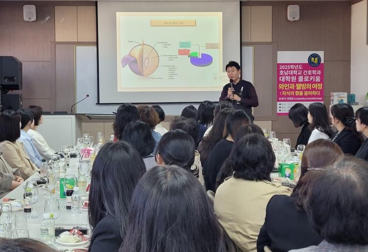 À̹ø ÄÝ·ÎŰ¿ò¿¡¼´Â ¿Ü½ÄÁ¶¸®Çаú ±è¿µ±Õ ±³¼ö°¡ ÃÊû °¿¬ÀÚ·Î ³ª¼, ¿ÍÀÎÀÇ ¿ª»ç¿Í Àι®Àû °¡Ä¡, ±×¸®°í µ¹º½ÀÇ Ã¶ÇÐÀ» °áÇÕÇÑ ÁÖÁ¦·Î °¿¬À» ÁøÇàÇß´Ù. ±è ±³¼ö´Â ¿ÍÀÎÀÌ ´Ü¼øÇÑ À½·á°¡ ¾Æ´Ñ ¡®°ü°è¿Í ¹è·ÁÀÇ ¿¹¼ú¡¯ÀÓÀ» °Á¶Çϸç, °£È£¿Í µ¹º½ÀÇ º»ÁúÀ» »õ·Î¿î °üÁ¡¿¡¼ ¹Ù¶óº¼ ¼ö ÀÖµµ·Ï ¾È³»Çß´Ù.