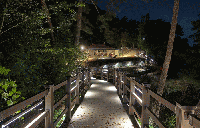 ƯÈ÷ ¼öº¯µ¥Å©¿Í »êÃ¥±æ¿¡´Â °æ°üÁ¶¸íÀ» ¼³Ä¡ÇØ ¾ß°£¿¡µµ ¾ÈÀüÇÏ°í ¾Æ¸§´Ù¿î º¸Çàȯ°æÀ¸·Î ±¸¼ºÇßÀ¸¸ç, ÀüÅë¹Ì¿Í ÀÚ¿¬°æ°üÀÌ Á¶È¸¦ ÀÌ·ç´Â °ø°£À¸·Î »õ´ÜÀåÇß´Ù.