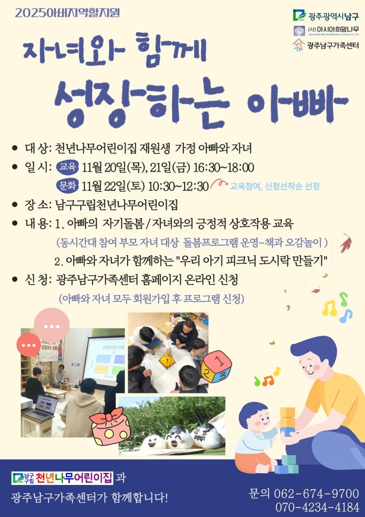 ÀÌ¿µ¼ö ¿øÀåÀº ¡°À̹ø ÇÁ·Î±×·¥Àº ¾Æ¹öÁöµéÀÌ ÀÚ³à¿ÍÀÇ °ü°è¿¡¼ ±àÁ¤ÀûÀÎ ¾çÀ° ŵµ¸¦ ¹è¿ì°í ½ÇõÇÒ ¼ö ÀÖ´Â ¶æ±íÀº ±âȸ°¡ µÉ °Í¡±À̶ó¸ç, ¡°°¡Á¤ ³»¿¡¼ ¾Æ¹öÁöÀÇ Âü¿©°¡ È®´ëµÇ¾î °¡Á· ¸ðµÎ°¡ ÇÔ²² ¼ºÀåÇÏ´Â ÇູÇÑ ½Ã°£ÀÌ µÇ±â¸¦ ¹Ù¶õ´Ù¡±°í ÀüÇß´Ù.