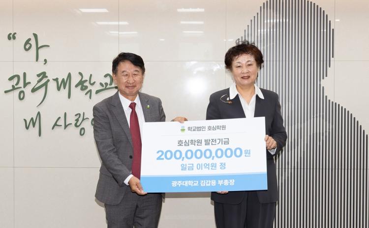[ÅåÅå´º½º]±¤ÁÖ´ëÇб³ ±è°©¿ë ºÎÃÑÀåÀº 4ÀÏ ¿ÀÀü Çб³¹ýÀΠȣ½ÉÇпø(ÀÌ»çÀå ¼Û¼÷³²) ¹× ±¤ÁÖ´ëÇб³(ÃÑÀå ±èµ¿Áø)ÀÇ Áö¼Ó °¡´ÉÇÑ ¹ßÀü°ú ÈÄÇÐ ¾ç¼ºÀ» À§ÇØ 2¾ï ¿øÀÇ ¹ßÀü±â±ÝÀ» ÄèôÇß´Ù.