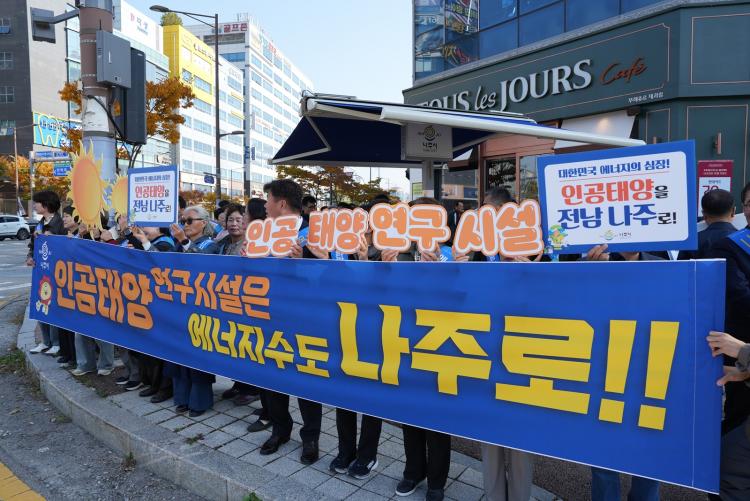 À±º´Å ³ªÁÖ½ÃÀåÀº ¡°±¤ÁÖ¿Í Àü³²ÀÇ ¹Ì·¡ 100³âÀ» ¿¾î°¥ ÀΰøÅÂ¾ç ¿¬±¸½Ã¼³ÀÇ ³ªÁÖ À¯Ä¡¸¦ À§ÇØ ½Ã¹ÎÀÇ ´ÜÇÕµÈ ÈûÀÌ ÇÊ¿äÇÏ´Ù¡±¸ç ¡°À¯Ä¡ ¿±â¸¦ ´õ¿í È®»ê½ÃÄÑ ¹Ýµå½Ã ³ªÁÖ¿¡ À¯Ä¡Çϰڴ١±°í °ÇÑ ÀÇÁö¸¦ ¹àÇû´Ù.