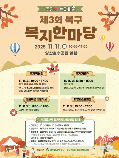 ¿ÃÇØ·Î 3ȸ°¸¦ ¸Â´Â ¡®º¹ÁöÇѸ¶´ç¡¯Àº ºÏ±¸ Áö¿ª»çȸº¸ÀåÇùÀÇüÀÇ ÁÖ°üÀ¸·Î ¡ãº¹Áö ¹Ú¶÷ȸ ¡ãµ¹º½ÀÌ¿ô ³ª´®½Ä»ç ¡ã±â³ä½Ä ¡ãÈÇÕ°ú ¼ÒÅëÀÇ Àå ¼øÀ¸·Î ÁøÇàµÈ´Ù.