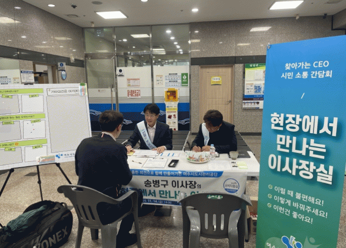 ¿©¼ö½Ãµµ½Ã°ü¸®°ø´Ü ÀÌ»çÀåÀº ¡°½Ã¹Î°ú ÇÔ²² ³»ÀÏÀ» ¸¸µé¾î°¡´Â ¸¶À½À¸·Î ÀÌ»çÀå½ÇÀÇ ¹®À» ¿¾ú´Ù¡±¸ç ¡°Á÷Á¢ µè°í °ø°¨ÇÑ ¸ñ¼Ò¸®¸¦ ÅëÇØ ÇöÀåÀÌ »ì¾ÆÀÖ´Â °ø´ÜÀ» ¸¸µé¾î°¡°Ú´Ù¡±°í ¹àÇû´Ù.
