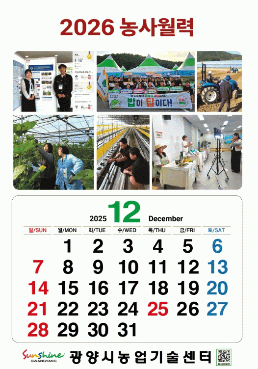 ÀÌÀºÈñ ±â¼úº¸±Þ°úÀåÀº ¡°³ó»ç¿ù·ÂÀ» Âü°íÇØ ¿µ³ó ÀÏÁ¤À» °èȹÇÏ¸é ½Ã±â¸¦ ³õÄ¡Áö ¾Ê°í ü°èÀûÀ¸·Î ÇÑ ÇØ ³ó»ç¸¦ ÁöÀ» ¼ö ÀÖ´Ù¡±¸ç ¡°±¤¾ç½Ãû°ú ³ó¾÷±â¼ú¼¾ÅÍ È¨ÆäÀÌÁö·Î ¿¬°áµÇ´Â QRÄڵ嵵 ÇÔ²² ÀμâµÅ ÀÖÀ¸´Ï Àû±Ø Ȱ¿ëÇØ ´Þ¶ó¡±°í ¸»Çß´Ù.