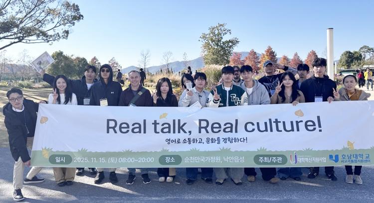 [ÅåÅå´º½º]È£³²´ëÇб³ ºñ±³°úÅëÇÕÁö¿ø¼¾ÅÍ(¼¾ÅÍÀå ÁÂÇö¼÷)´Â 11¿ù 15ÀÏ Àü³² ¼øÃµ ³«¾ÈÀ¾¼º°ú ¼øÃµ¸¸±¹°¡Á¤¿ø¿¡¼ ÀçÇлý 15¸í°ú ¿ø¾î¹Î 3¸íÀÌ ÇÔ²² Âü¿©ÇÑ °¡¿îµ¥ ½ÇÀüÇü ¿µ¾îÈ¸È ÇÁ·Î±×·¥ ¡®Real Talk¡¯¸¦ ¿î¿µÇß´Ù.