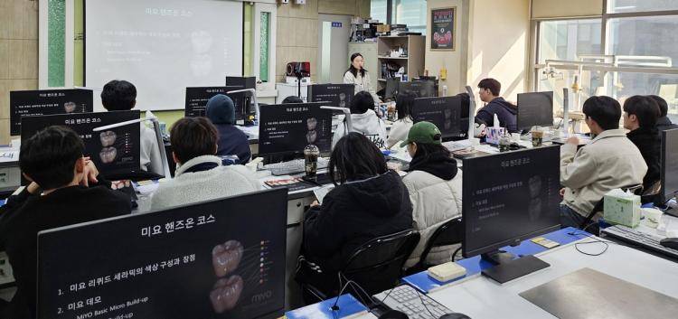 ƯÈ÷ ¢ßÇÑÁøµ§Å» »çÈ¿°æ ¿¬±¸¿øÀÇ ÁÖµµ ¾Æ·¡ Áַ»óǰ ¡®MIYO¡¯¿¡ ´ëÇÑ ½Ç½ÀÀÌ ÁøÇàµÆ´Ù. ¿¬±¸¿øÀº Á¦Ç°ÀÇ Æ¯¼º°ú »ç¿ë¹ý¿¡ µû¸¥ ¿¬·É´ëº° ȯÀÚ Ä¡¾Æ»ö»ó Ç¥Çö°ú ÀÓ»óÀû¿ë ¹æ¹ýÀ» ü°èÀûÀ¸·Î ¼³¸íÇßÀ¸¸ç, ÇлýµéÀÌ Á÷Á¢ ½Ç½ÀÇÑ º¸Ã¶¹°À» ÇϳªÇϳª È®ÀÎÇÏ°í ºñ±³ Æò°¡ÇÏ´Â ½Ã°£À» ¸¶·ÃÇØ ½Ç½À ÀÌÇØµµ¸¦ Å©°Ô ³ô¿´´Ù.