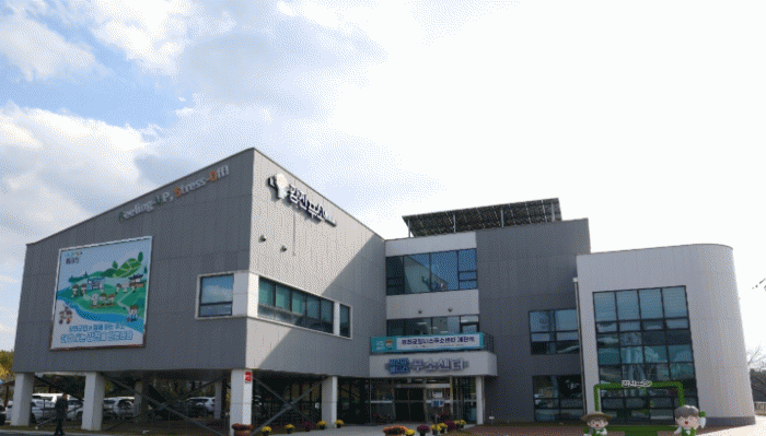 1Ãþ¿¡´Â °ÁøÇª¼ÒÀÇ ¹ßÀÚÃë¿Í ¼º°ú¸¦ ¼Ò°³ÇÏ´Â È«º¸°ü°ú Áö¿ª ³óƯ»ê¹°À» ÆÇ¸ÅÇÏ´Â ÃʷϹÏÀ½ ÆÇ¸ÅÀåÀÌ ÀÚ¸®Çϸç 2Ãþ¿¡´Â °¢Á¾ ±³À°°ú Çà»ç¸¦ ÁøÇàÇÒ ¼ö ÀÖ´Â ´ëȸÀǽÇ, Á¶¸®½Ç, ¼¼¹Ì³ª½ÇÀÌ °®ÃçÁ® ÀÖ´Ù.