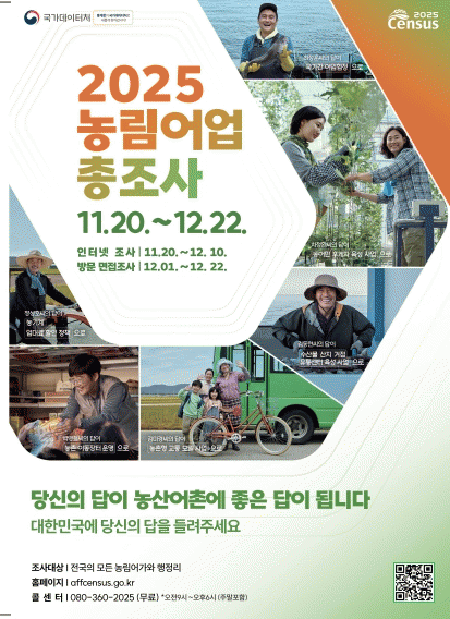 À̹ø Á¶»ç´Â 5³â ÁÖ±â·Î ½ÃÇàµÇ´Â ±¹°¡ ´ÜÀ§ ´ë±Ô¸ð Åë°èÁ¶»ç·Î, ³ó¸²¾î°¡ÀÇ ±Ô¸ð¿Í ºÐÆ÷, °æ¿µ ÇüŸ¦ ºñ·ÔÇÑ Áö¿ª ´ÜÀ§ °æÁ¦È°µ¿ ¹× »ýȰ±â¹Ý½Ã¼³ ÇöȲÀ» Á¾ÇÕÀûÀ¸·Î ÆÄ¾ÇÇØ ÇâÈÄ ³ó¸²¾î¾÷ Á¤Ã¥ ¼ö¸³ÀÇ ±âÃÊÀÚ·á·Î Ȱ¿ëµÈ´Ù.